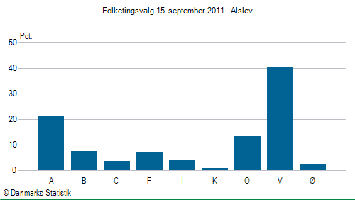 | Stemmer | | Parti | Antal | Pct. | | | | A. Socialdemokratiet | 210 | 21,1% | | B. Radikale Venstre | 74 | 7,4% | | C. Det Konservative Folkeparti | 35 | 3,5% | | F. SF - Socialistisk Folkeparti | 69 | 6,9% | | I. Liberal Alliance | 41 | 4,1% | | K. Kristendemokraterne | 9 | 0,9% | | O. Dansk Folkeparti | 131 | 13,2% | | V. Venstre, Danmarks Liberale Parti | 401 | 40,3% | | Ø. Enhedslisten - De Rød-Grønne | 24 | 2,4% | | I alt gyldige stemmer | 994 | | | Blanke stemmer | 8 | | Andre ugyldige stemmer | 2 | | I alt ugyldige stemmer | 10 | | | I alt afgivne stemmer | 1.004 | |
