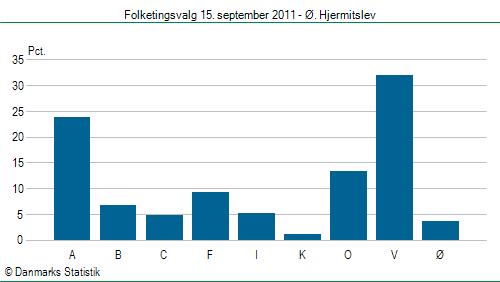 | Stemmer | | Parti | Antal | Pct. | | | | A. Socialdemokratiet | 64 | 23,8% | | B. Radikale Venstre | 18 | 6,7% | | C. Det Konservative Folkeparti | 13 | 4,8% | | F. SF - Socialistisk Folkeparti | 25 | 9,3% | | I. Liberal Alliance | 14 | 5,2% | | K. Kristendemokraterne | 3 | 1,1% | | O. Dansk Folkeparti | 36 | 13,4% | | V. Venstre, Danmarks Liberale Parti | 86 | 32,0% | | Ø. Enhedslisten - De Rød-Grønne | 10 | 3,7% | | I alt gyldige stemmer | 269 | | | Blanke stemmer | 3 | | Andre ugyldige stemmer | 2 | | I alt ugyldige stemmer | 5 | | | I alt afgivne stemmer | 274 | |