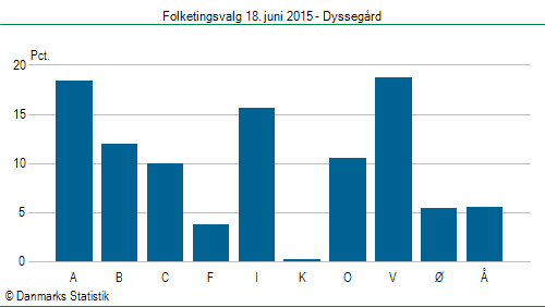 | Stemmer | | Parti | Antal | Pct. | | | | A. Socialdemokratiet | 832 | 18,4% | | B. Radikale Venstre | 538 | 11,9% | | C. Det Konservative Folkeparti | 447 | 9,9% | | F. SF - Socialistisk Folkeparti | 170 | 3,8% | | I. Liberal Alliance | 704 | 15,6% | | K. Kristendemokraterne | 9 | 0,2% | | O. Dansk Folkeparti | 476 | 10,5% | | V. Venstre, Danmarks Liberale Parti | 845 | 18,7% | | Ø. Enhedslisten - De Rød-Grønne | 242 | 5,4% | | Å. Alternativet | 248 | 5,5% | | Uden for partierne | 3 | 0,1% | | I alt gyldige stemmer | 4.514 | | | Blanke stemmer | 31 | | Andre ugyldige stemmer | 5 | | I alt ugyldige stemmer | 36 | | | I alt afgivne stemmer | 4.550 | |