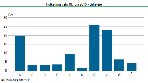| Stemmer | | Parti | Antal | Pct. | | | | A. Socialdemokratiet | 895 | 19,8% | | B. Radikale Venstre | 138 | 3,1% | | C. Det Konservative Folkeparti | 149 | 3,3% | | F. SF - Socialistisk Folkeparti | 156 | 3,5% | | I. Liberal Alliance | 428 | 9,5% | | K. Kristendemokraterne | 63 | 1,4% | | O. Dansk Folkeparti | 1.162 | 25,7% | | V. Venstre, Danmarks Liberale Parti | 1.038 | 23,0% | | Ø. Enhedslisten - De Rød-Grønne | 282 | 6,2% | | Å. Alternativet | 204 | 4,5% | | I alt gyldige stemmer | 4.515 | | | Blanke stemmer | 40 | | Andre ugyldige stemmer | 14 | | I alt ugyldige stemmer | 54 | | | I alt afgivne stemmer | 4.569 | |