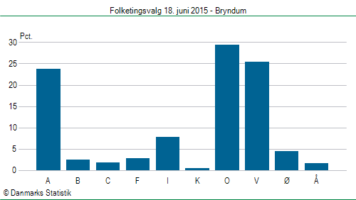| Stemmer | | Parti | Antal | Pct. | | | | A. Socialdemokratiet | 508 | 23,7% | | B. Radikale Venstre | 52 | 2,4% | | C. Det Konservative Folkeparti | 38 | 1,8% | | F. SF - Socialistisk Folkeparti | 58 | 2,7% | | I. Liberal Alliance | 167 | 7,8% | | K. Kristendemokraterne | 11 | 0,5% | | O. Dansk Folkeparti | 629 | 29,4% | | V. Venstre, Danmarks Liberale Parti | 545 | 25,5% | | Ø. Enhedslisten - De Rød-Grønne | 96 | 4,5% | | Å. Alternativet | 35 | 1,6% | | I alt gyldige stemmer | 2.139 | | | Blanke stemmer | 10 | | Andre ugyldige stemmer | 1 | | I alt ugyldige stemmer | 11 | | | I alt afgivne stemmer | 2.150 | |