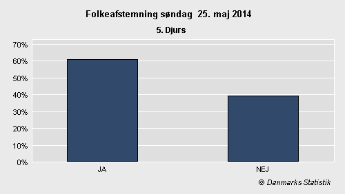 | Stemmer | | Parti | Antal | Pct. | | | | JA | 18.153 | 60,7% | | NEJ | 11.732 | 39,3% | | I alt gyldige stemmer | 29.885 | | | Blanke stemmer | 1.064 | | Andre ugyldige stemmer | 60 | | I alt ugyldige stemmer | 1.124 | | | I alt afgivne stemmer | 31.009 | |
