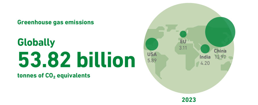 In proportion to the global greenhouse gas emissions, the Danish emissions only constitute a very small part. Obviously, the emissions of large countries with a large population are different from those of small countries such as Denmark. Big countries and economies, such as China and USA, are also the biggest emitters of greenhouse gases.