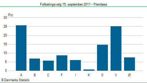 | Stemmer | | Parti | Antal | Pct. | | | | A. Socialdemokratiet | 182 | 25,6% | | B. Radikale Venstre | 48 | 6,7% | | C. Det Konservative Folkeparti | 40 | 5,6% | | F. SF - Socialistisk Folkeparti | 61 | 8,6% | | I. Liberal Alliance | 42 | 5,9% | | K. Kristendemokraterne | 4 | 0,6% | | O. Dansk Folkeparti | 104 | 14,6% | | V. Venstre, Danmarks Liberale Parti | 178 | 25,0% | | Ø. Enhedslisten - De Rød-Grønne | 53 | 7,4% | | I alt gyldige stemmer | 712 | | | Blanke stemmer | 8 | | Andre ugyldige stemmer | 2 | | I alt ugyldige stemmer | 10 | | | I alt afgivne stemmer | 722 | |