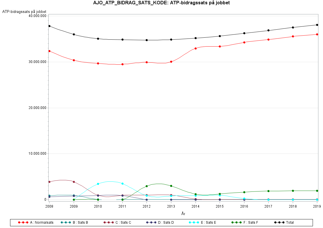 Der er flg. sats-koder: A-B-C-D-E-F, hvor B-F bidragssatser kun gælder ansatte på det offentlige arbejdsmarked: