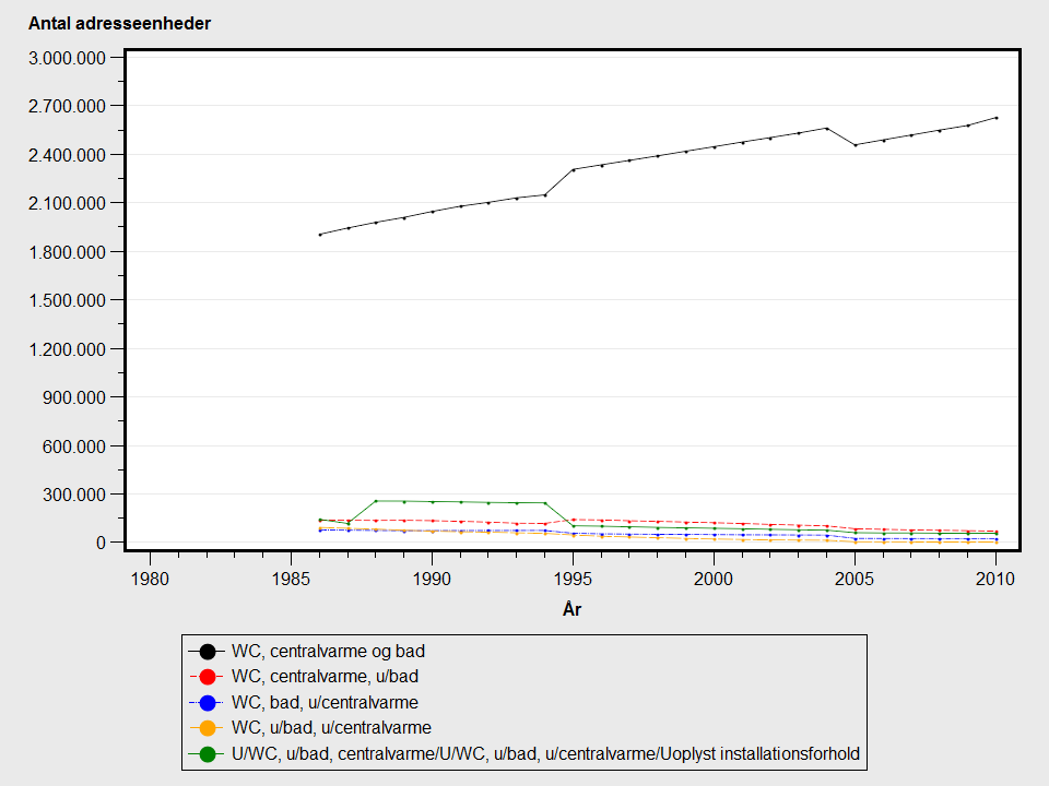 Installationsforhold: Toilet og bad, men uden centralvarme - Kodeværdi=3