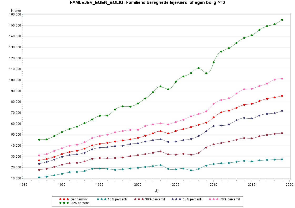 For årene 1995 til 2006 er lejeværdien normeret i forhold til nationalregnskabets tal for den samlede husleje af egen bolig i Danmark(reviderede version fra efterår 2014). Fra 1987 til 1994 er lejeværdien normeret til 61 pct. af lejeværdien for alle boliger i nationalregnskabet(reviderede version fra efterår 2014).