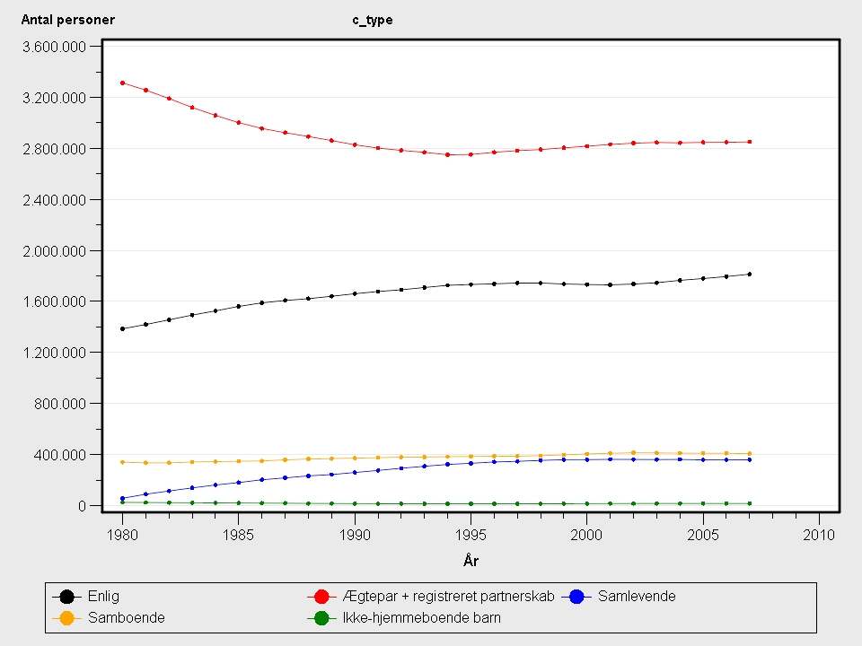 C-TYPE er en variabel, der knytter sig til familien og vedrører den 1. januar. C-TYPE angiver C-familietypen. det vil sige, om familietypen er en enlig med eller uden børn, et ægtepar med eller uden børn, et registreret partnerskab med eller uden børn, et samlevende par med eller uden børn, et samboende par med eller uden børn eller som den sidste C-familietype et ikke- hjemmeboende barn under 18 år.De to personer i et par skal have samme CPR-adresse for at udgøre en af de fire partyper, der opereres med: ægtepar, registreret partnerskab, samlevende par eller samboende par.