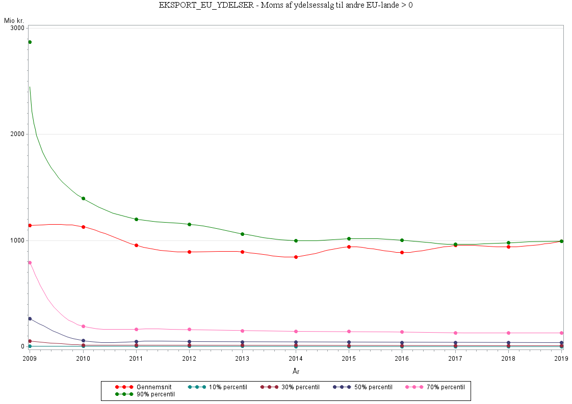 Databeskrivelse: Fra 1.januar 2010 benyttes omvendt betalingspligt ved salg af tjenesteydelser til EU-lande. Det betyder, at salg, der tidligere var momspligtigt i Danmark og i momsangivelsen indgik i indenlandsk salg herefter indgår i salg af ydelser til EU-lande. Det giver et databrud i den momsbaserede opgørelse af indenlandsk salg fra 2009 til 2010, og må antages samtidig at have medført et brud i eksporten af ydelser til EU.