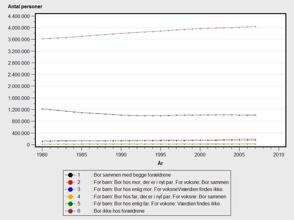 | 3 | For børn: Bor hos enlig mor. For voksneVværdien findes ikke. | 01-01-1980 | |