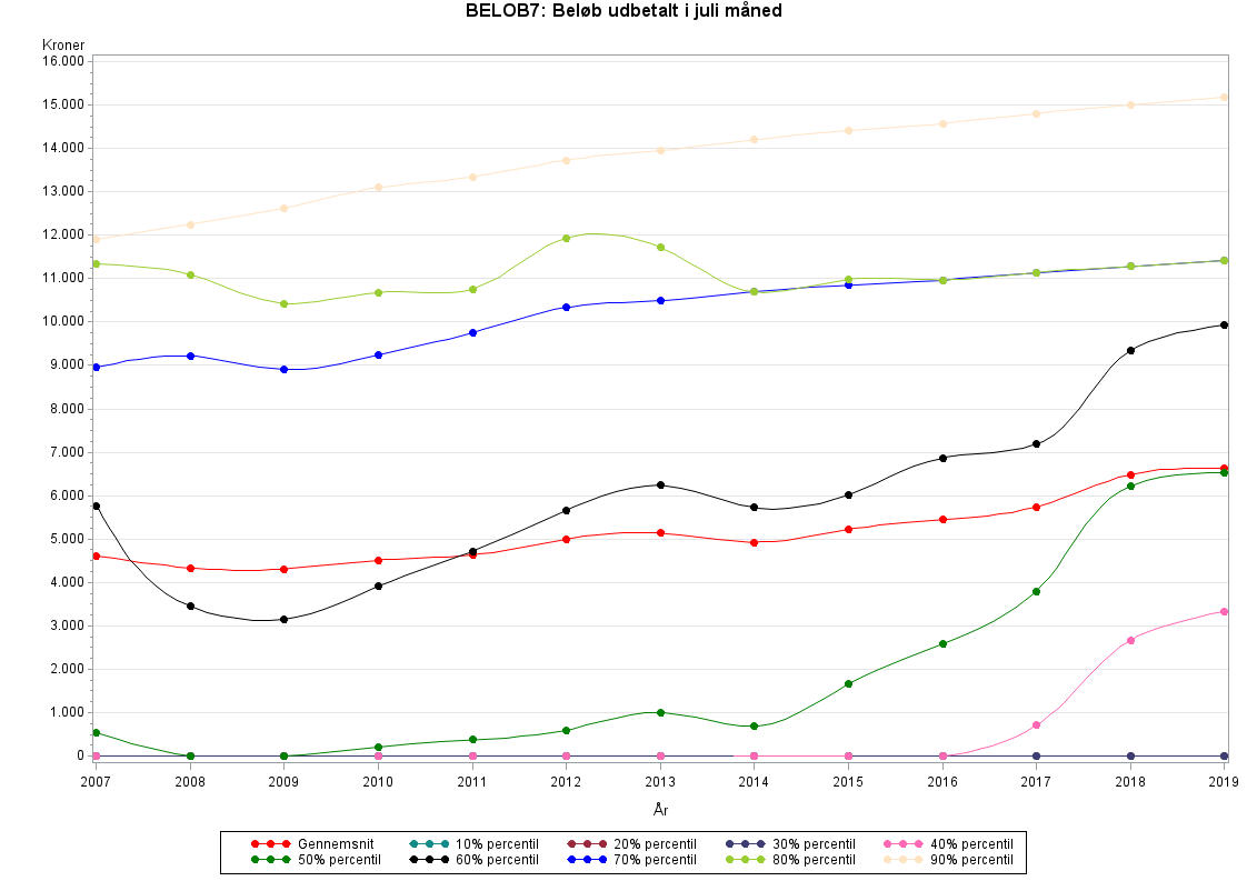 Udbetalt beløb i juli måned - beregnet ud fra hvilken måned, den sidste dag i den periode, som udbetalingen dækker, lå i.Beløbet kan være negativt i forbindelse med efterreguleringer eller ved ydelser, der er bevilget med tilbagebetalingspligt, eller hvor ydelsen skal tilbagebetales, fx fordi modtageren har givet forkerte oplysninger til kommunen. Det sker ret ofte, at der udbetales et beløb, der dækker en længere periode. Især gælder det for løntilskudsordningerne, hvor beløbet udbetales til en arbejdsgiver.