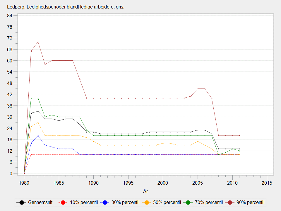 Ledighedsperioder blandt ledige arbejdere i gennemsnit