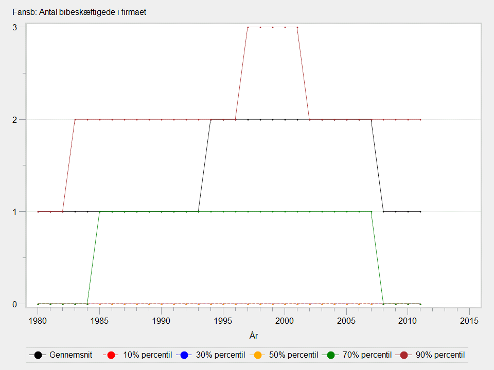 Antallet af bibeskæftigede ansatte pr. firma er dannet via aggregering af de arbejdssteder, der indgår i det pågældende firma i det givne år. Der aggregeres for variablen ARBGNR. Hver gang der optræder et nyt arbejdssted tilhørende firmaet med identisk ARBNGR, det vil sige en ny record med det samme ARBGNR, men en ny arbejdsstedskode (ARBSTK), tillægges antallet af bibeskæftigede for det enkelte arbejdssted i aggregeringen.
