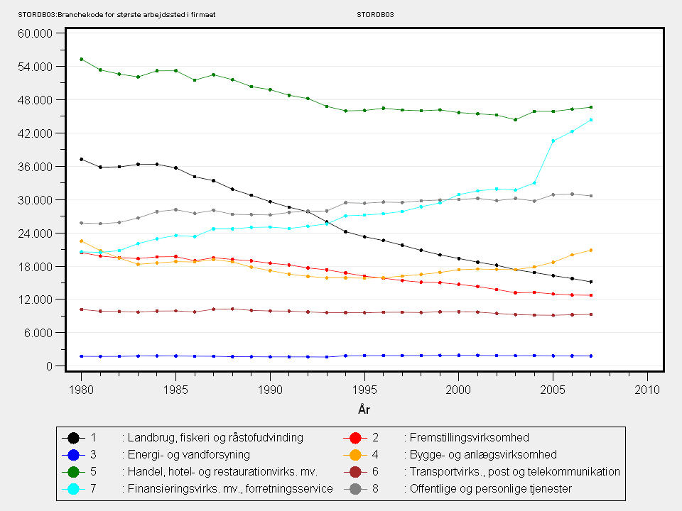 I perioden 1980-1992 består STORDB93 af 111-standardgrupperingen under DB93. (Dansk branchekode 1993) (Se publikationen Dansk Branchekode 1993 for værdisæt (Standard-grupperingen findes på side 258)). Fra 1993 består STORDB93 af den sekscifrede DB93-kode. Der er således et skift i branchenomenklaturen i 1993, hvor branchenomenklaturen skifter fra DSE77 til DB93 rev. 1 og i 1997, hvor der skiftes til DB93 rev. 2. I 2004 skifter branchenomenklaturen til DB03.