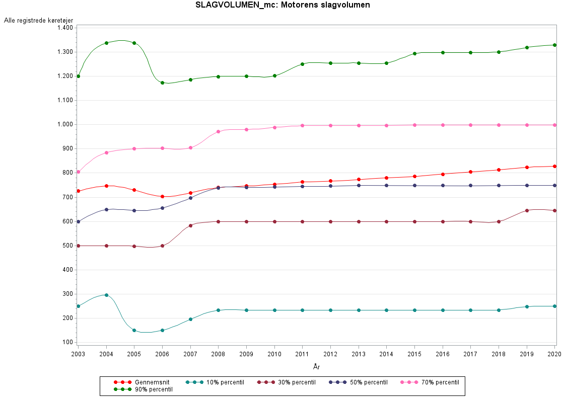 Kan sammen med energieffektivitet (km/l) og motoreffekt belyse motorernes tekniske udvikling over tid.