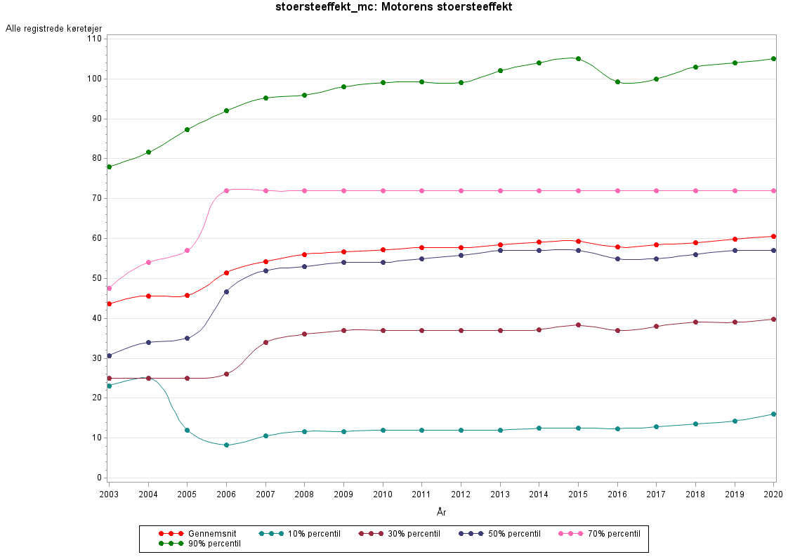 Gyldig fra 1992. Tabellen med fordelinger på drivkrafttype indeholder også ikke-motorkøretøjer, fx påhængsvogne, som ikke har kodning for drivkrafttype.