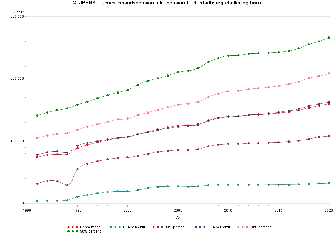 Danmarks Statistik har opgjort tjenestmandspensionen fra og med 1991. Før dette år ligger beløbet i variablen RESUINK_GL.