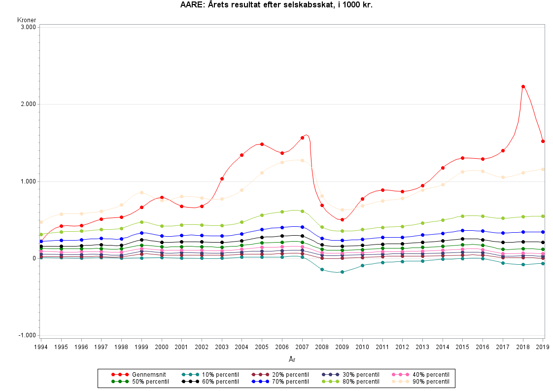 Det samlede resultat (overskud/underskud) af regnskabsårets aktivitet, efter at den selskabsskat (SSAR), som årets aktivitet har givet anledning til, er fratrukket. Værdi er angivet i 1.000 kr.