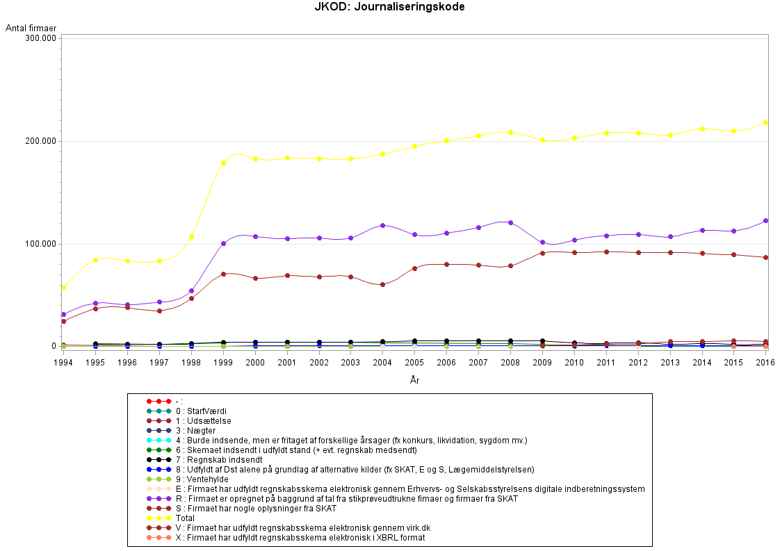 Variablen JKOD indgår til og med år 2016, hvorefter den udgår og erstattes af variablen KODE fra år 2017.