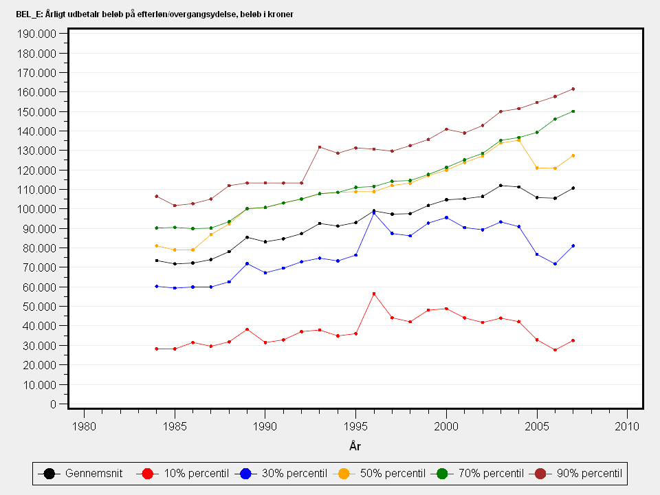 Årligt udbetalt beløb på efterløn/overgangsydelse. Beløb i hele kroner.