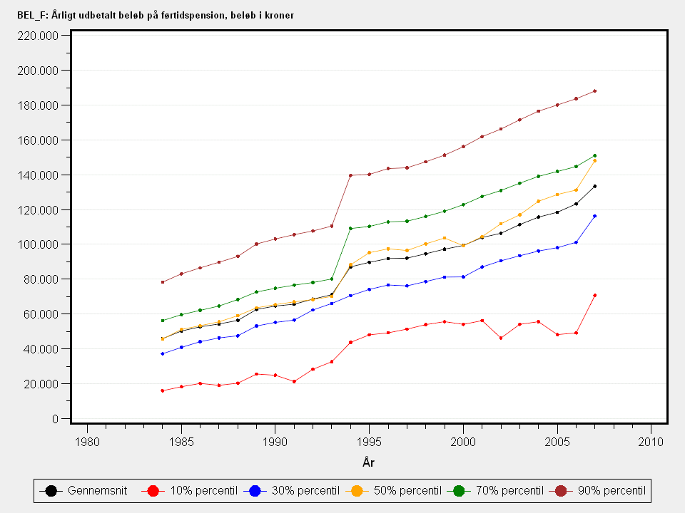 Årligt udbetalt beløb på førtidspension. Beløb i hele kroner.Detaljeret beskrivelse