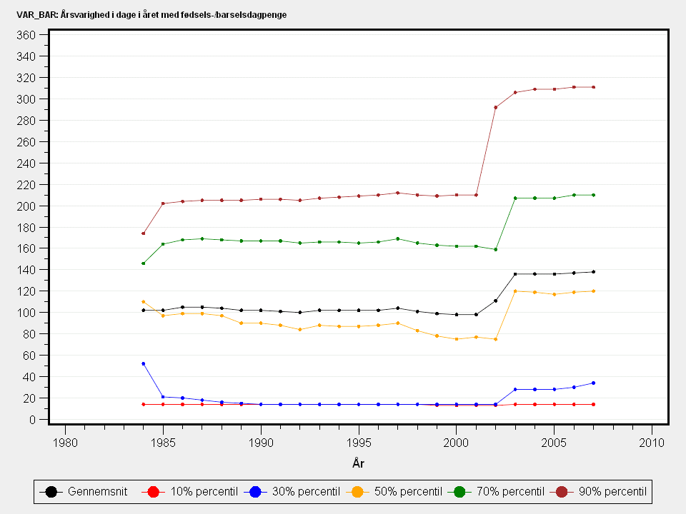 Årsvarighed i dage i året med fødsels-/barselsdagpenge.