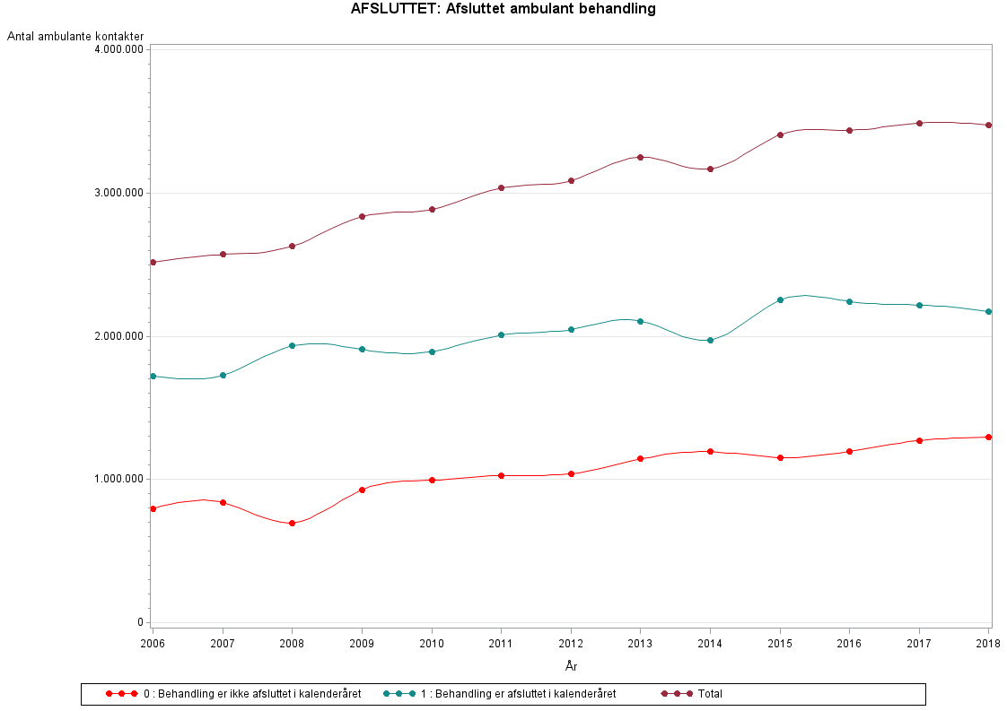 AFSLUTTET angiver, om en ambulant kontakt er afsluttet eller ej.Hvis den ambulante kontakt er registreret med en udskrivningsdato i kalenderåret, så angives kontakten som afsluttet. Hvis dette ikke er tilfældet, så angives den ambulante kontakt som uafsluttet.